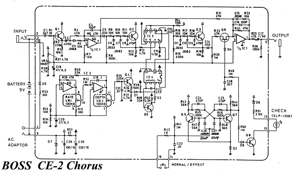 Принципиальная схема педали эффекта Boss Chorus CE-2