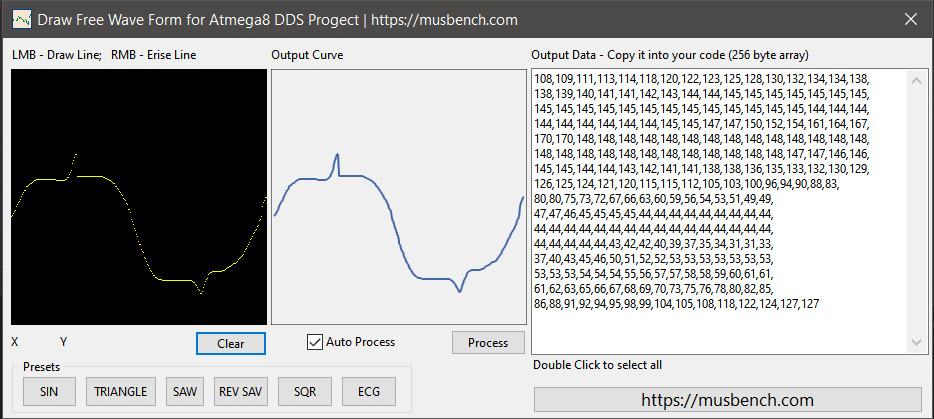 Для создания таблиц произвольных форм сигнала я написал простую программу, в которой можно рисовать мышкой различные волновые формы: