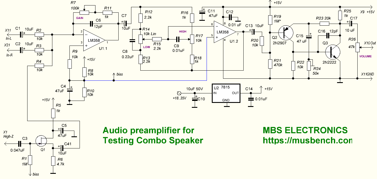 Принципиальная схема предварительного усилителя
