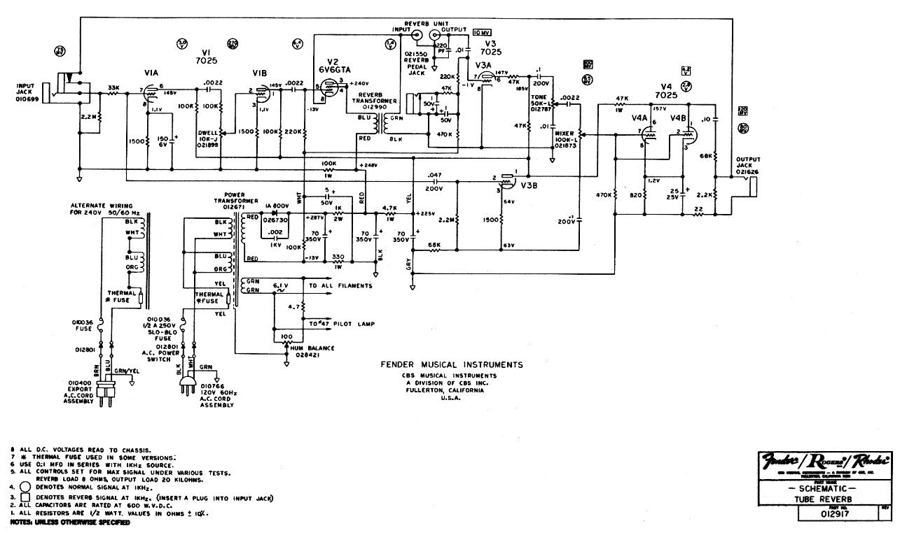 Fender Tube Reverb SF — это классический ламповый пружинный ревербератор., выполненный в виде отдельного устройства (обычно такие ревербераторы встраиваются в гитарные комбики). Для работы этого ревербера необходим собственно электромеханический блок пружинного ревербератора. Он может быть самодельным или фабричным. Состоит такой блок из нескольких стальных пружин, электромагнитного возбудителя и электромагнитного датчика.