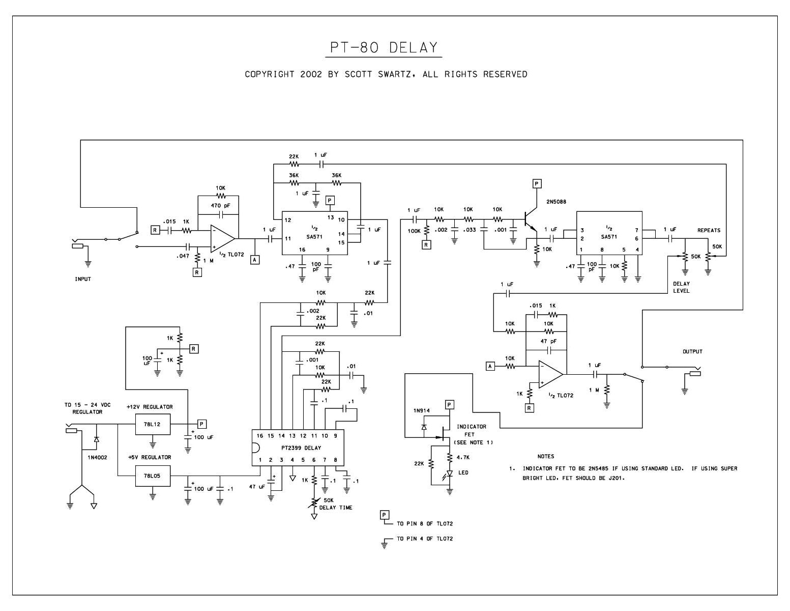 Все статьи блогаГитарная электроникаГитарные эффектыМузыкальная электроникаPT-80 DELAY — Схема на PT2399 Гитарный эффект Delay (задержка). Основой схемы этой педали является специализированная микросхема временной задержки типа PT2399.
