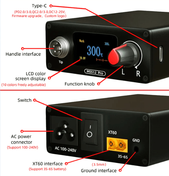 Миниатюрная интеллектуальная паяльная станция с поддержкой питания от адаптеров с PD QC и популярных наконечников T12