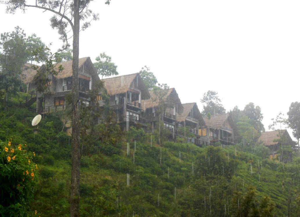 Я не выдержал и пошел в глубь плантаций. Рвал листочки с кустов вместе со сборщиками чая. Они «на чай» еще не привыкли просить. Рядом нашел суперэлитный отель прямо над чайной плантацией. Очень красивые домики в европейском стиле. Я не выдержал и потратился на распитие местного чая в местном ресторане. Почем тут жилье я не спрашивал и так понятно, что живут тут очень и очень непростые европейцы. Ну и во время чаепития пошел проливной дождь. Пришлось наслаждаться красотой дольше запланированного. Будет возможность когда-нибудь, я с удовольствием вернусь сюда.